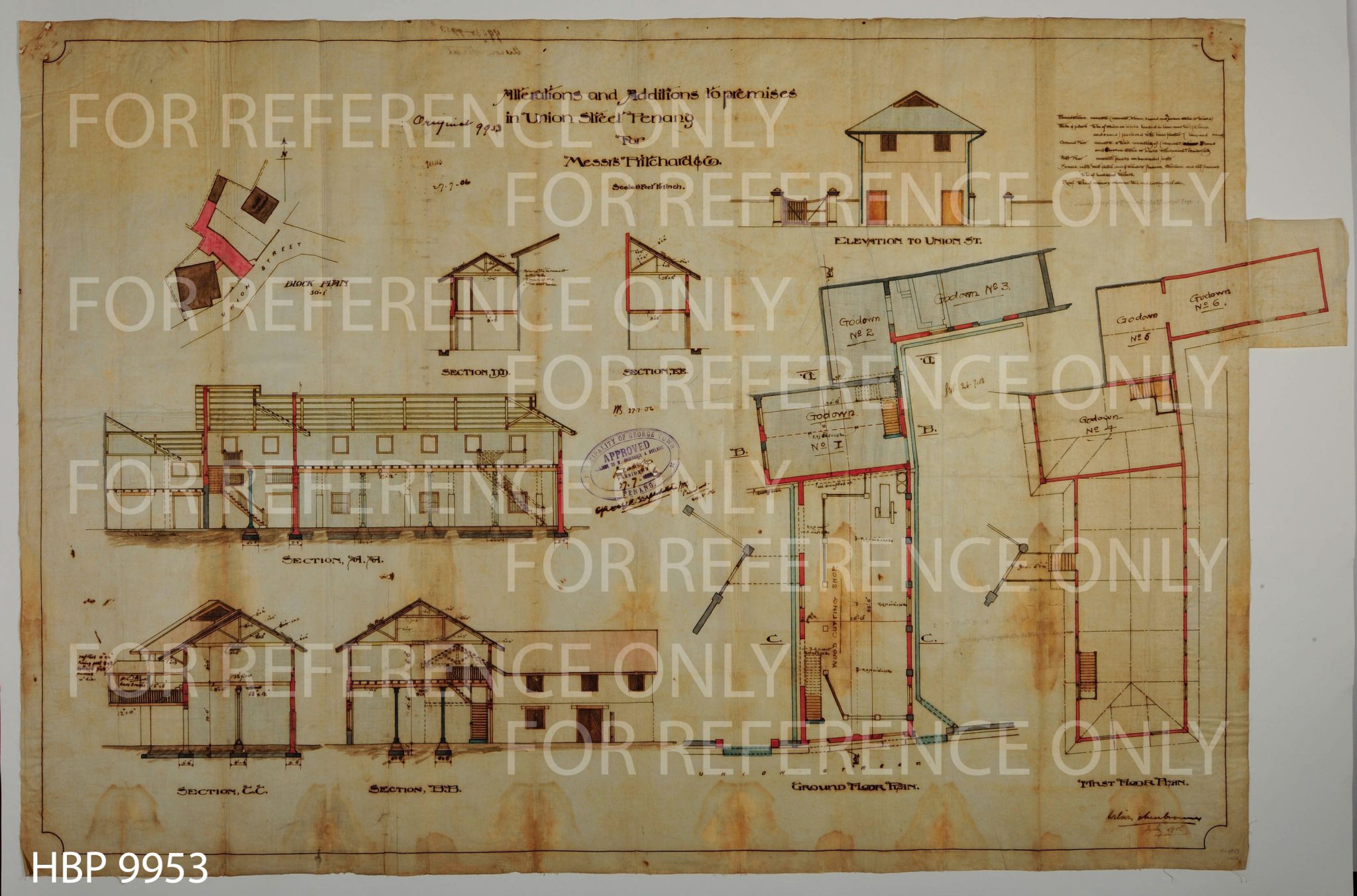 Features: | For: Ong Hun Siew, Architect: Chan Tiang Boon, alterations and additions, kitchen and side wall, Specification: brick, lime mortar tiled roof, jack roof on kitchen, |