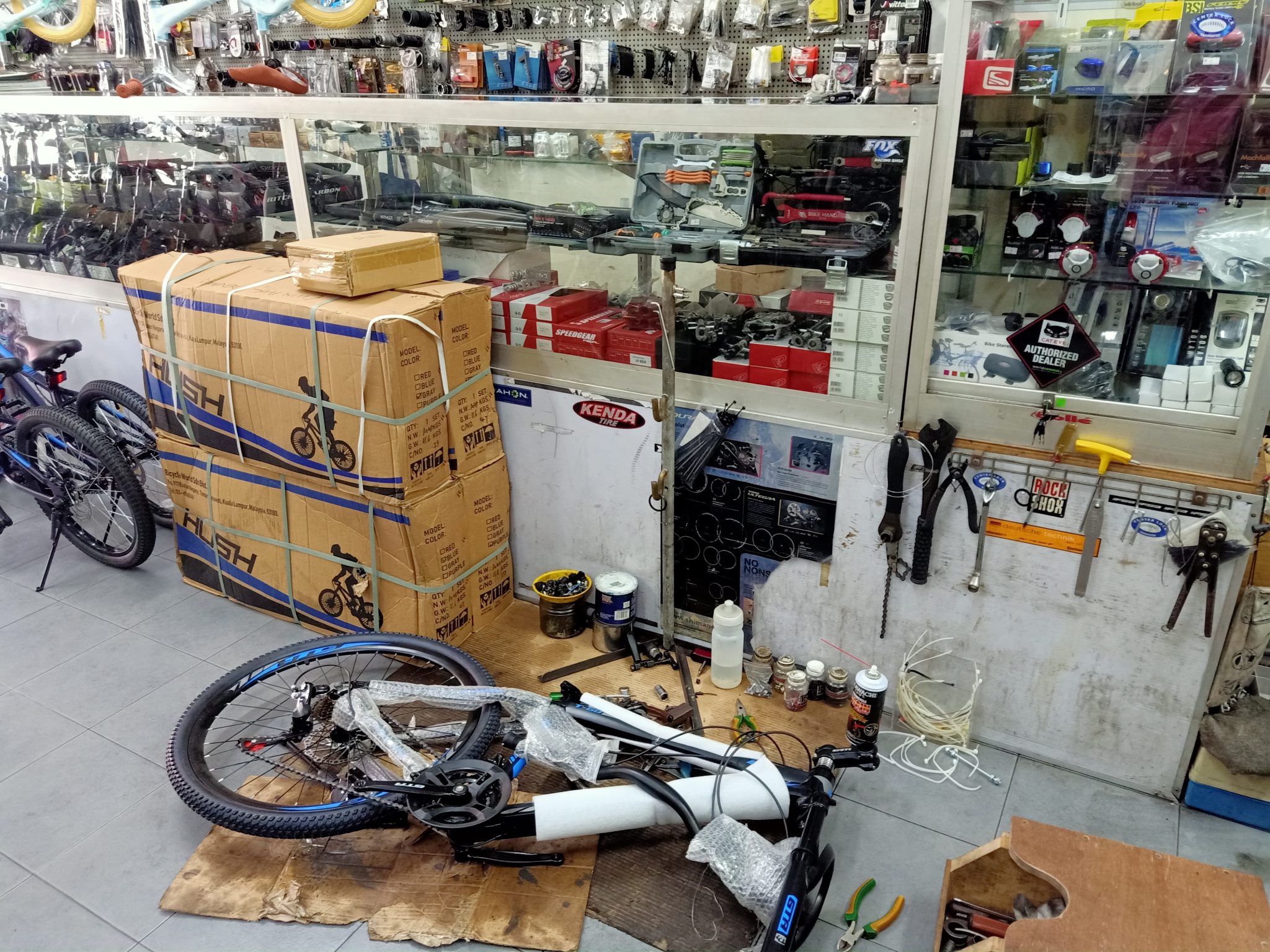 各種騎腳車時的必備配件例如安全帽、手套、鞋子、水瓶架、燈、喇叭、腳車包等也能在該店買到。他們還提供腳車修理及配件裝配服務,並可送貨至全檳州。