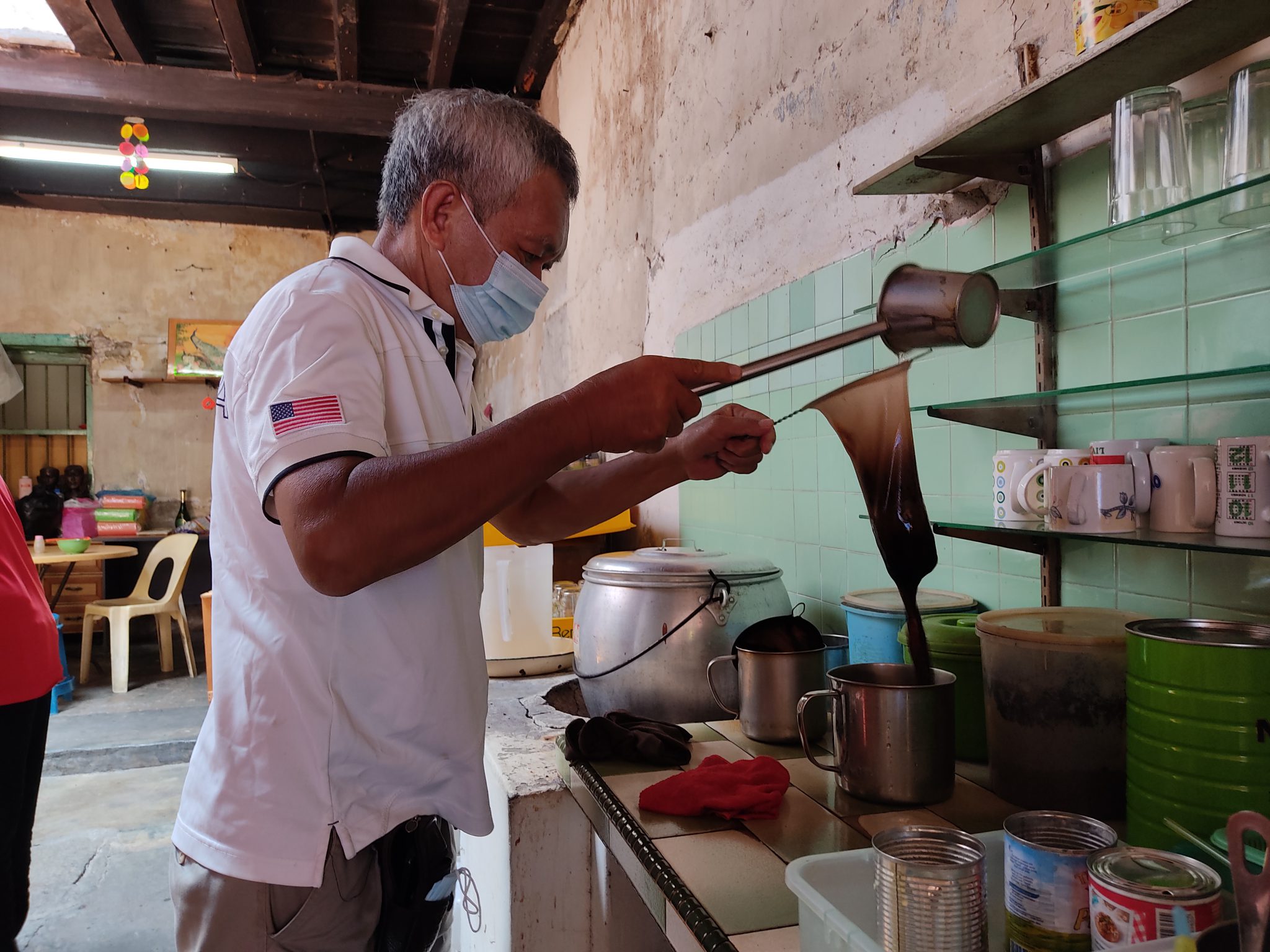 Peng Tee Enterprise Peng Tee 咖啡店 Information in English Maklumat dalam Bahasa Malaysia 中文資訊 About the Business This coffee shop is the only traditional coffee shop along Lebuh Acheh.It does not have a signboard and has been operating since the 1960s by serving drinks and gathering spots for the local residents to have chit-chats. Even though they do not have a menu, air-conditioning, music, coffee machine or decorations, regular customers still visit the shop up until today. Usually, they will read newspapers while enjoying their hailam coffee in the coffee shop. Mr Ng Kwung Pheng used to run a canteen before deciding to take over the coffee shop in 2009, he still practices the same traditional methods and utensils that have been used all the while. He will ask the customer “What drinks do you want to order?” once a customer enters the shop, and will prepare the drinks that have been ordered. Coffee, tea, Milo, almond milk, barley, herbal tea, and a variety of other beverages are available at the coffee shop. The famous Lebuh Acheh Wan Tan Mee stall is located next to the coffee shop, and customers usually eat there while ordering drinks from the coffee shop. As it is the only coffee shop on the street, and because of Mr Ng's friendliness in greeting and chatting with his customers, the coffee shop has become a favourite breakfast location for people who work in the area. Watch the Video In Progress Main Products and Services Local Beverages Salute Brand Coffee Powder Contact Details Address: 40, Lebuh Acheh, 10200 George Town, Pulau Pinang, Malaysia. Opening Hours: Daily (7am to 1.30pm) Contact Number: +6017-591 9946 Email: - Website: - Follow Online You May Also Be Interested In: Peng Tee Enterprise Kenali Perniagaan Kedai kopi ini merupakan satu-satunya kedai kopi tradisional yang terdapat di Lebuh Acheh. Kedai ini tidak mempunyai papan tanda dan mula beroperasi sejak 1960-an dengan menyediakan minuman dan tempat bersembang kepada penduduk setempat. Biarpun tiada menu, penghawa dingin, muzik, mesin pembancuh kopi dan hiasan yang menarik, pelanggan-pelanggan tetap masih kerap mengunjung ke kedai ini. Mereka membaca surat khabar dan bersembang santai sambil menghirup kopi hailam. Encik Ng Kwung Pheng yang pernah mengusahakan kantin mengambil alih kedai kopi ini pada tahun 2009. Beliau mengekalkan cara membancuh minuman dengan peralatan tradisional yang digunakan di kedai tersebut sejak dahulu lagi. Sebaik sahaja pelanggan memasuki kedai kopi, Encik Ng akan bertanya, “Nak minum apa?”. Setelah mengambil pesanan, beliau akan menyediakan minuman mengikut kesukaan pelanggan. Kedai kopi ini menghidangkan kopi, teh, milo, susu badam, barli, teh herba dan sebagainya. Gerai Wan Tan Mee Lebuh Acheh yang terkenal terletak bersebelahan kedai kopi ini, jadi para pelanggan boleh menikmati minuman dan makanan dalam kedai ini. Kedai kopi tradisional ini penuh dengan kemesraan. Golongan pekerja di kawasan sekitar selalu bersarapan pagi di sini, Encik Ng juga akan bertanya khabar dan bersembang dengan pelanggan beliau. Tonton Video Sedang Dijalankan Produk dan Perkhidmatan Utama Minuman tempatan Serbuk kopi Cap Tabik Maklumat Perniagaan Alamat: 40, Lebuh Acheh, 10200 George Town, Pulau Pinang, Malaysia. Waktu Operasi: 7am - 1.30pm (Isnin - Ahad) Nombor Telefon: +6017-591 9946 Emel: - Laman Web: - Follow Online Anda Mungkin Berminat Dengan: Peng Tee 咖啡店 簡介 喬治市打石街40號是這條街上碩果僅存的傳統咖啡店。它沒有招牌,自六十年代起就在那裡,為街坊提供餐飲服務。雖然沒有餐單、冷氣、音樂、咖啡機和精緻的佈置,老顧客依然喜歡在那裡天南地北地談天和翻閱報紙,當然少不了來一杯傳統海南咖啡。 目前的老板黃冠平先生是在2009年頂下了這家咖啡店,原是食堂業者的他,保留了前業者留下來的飲料沖泡用具,也堅持傳統的沖泡方法。顧客一走進咖啡店,黃先生就會問“要什麼水”。顧客點了飲料後,他就依顧客的喜好泡製出各種飲料。這家咖啡店沒有食攤,只售賣咖啡、茶、美祿、杏仁茶、薏米水、涼茶等飲料。 著名的打石街雲吞麵就在咖啡店毗鄰,食客點了雲吞麵後,可以選擇在咖啡店內點杯飲料和享用食物。 這家傳統咖啡店充滿老城的人情味。附近一些上班族在上班之前,都會先到那裡吃個早餐,老闆也會和顧客談天說地。 观看視頻 即將推出 主要產品與服務 手泡飲料 海軍牌咖啡粉 聯絡信息 地址: 40, Lebuh Acheh, 10200 George Town, Pulau Pinang, Malaysia 營業時間: 星期一至星期日 (7am - 1.30pm) 聯絡號碼: +6017-591 9946 電郵: - 網站: - Follow Online 你可能對以下内容感興趣: Last Updated: 2 March 2022